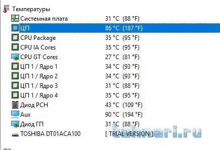 Но тем не менее замерял с другой программы CPUTIN меня тролит на 90 градусов