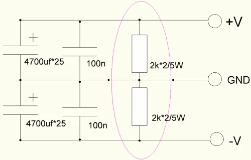 О. На большие фильтрующие конденсаторы необходимо повесить два мощных резистора мощностью 2/5вт и сопротивлением ~1-2ком. Это будет выглядеть вот так: