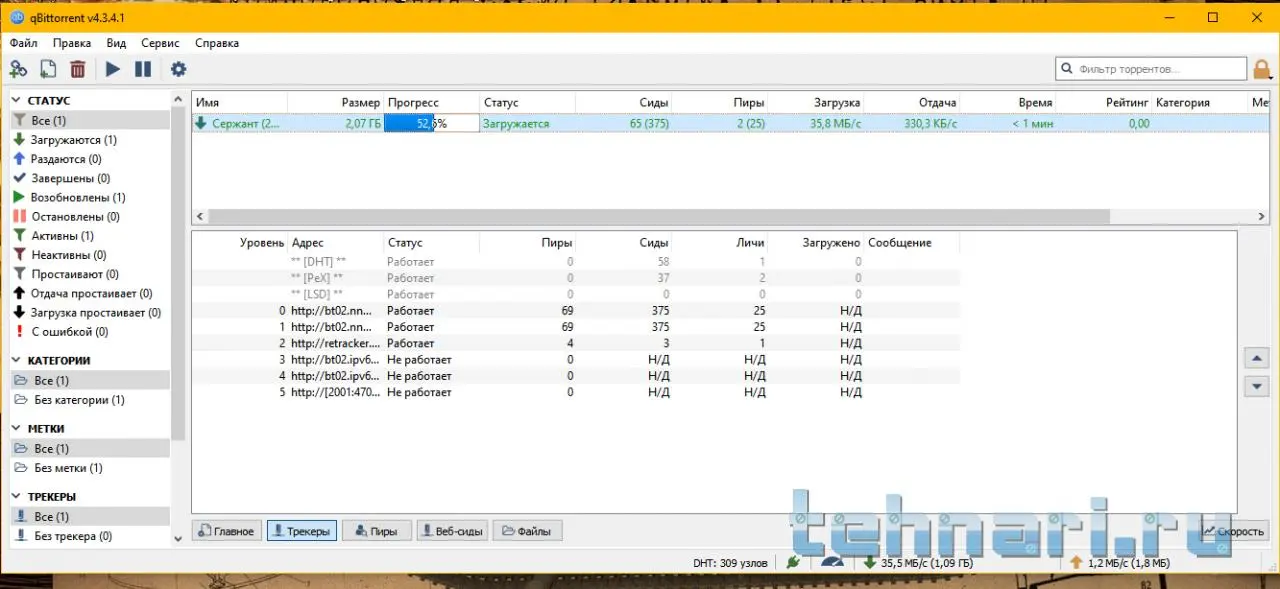 Так вот, помимо этих сайтов, я также загружаю торрент файл, который достаточно хорошо раздают, ну и таким образом тестирую сеть.