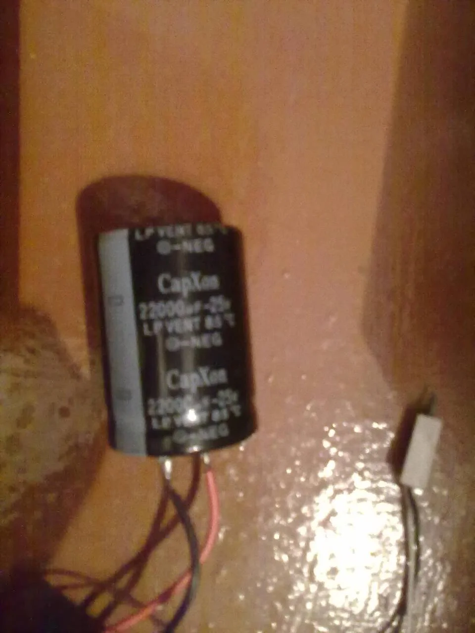 Что за кондер, так и не понял. Но растояние между "ножками" на плате маленькие, как будто для керамики(маленькие желтые такие :) ).