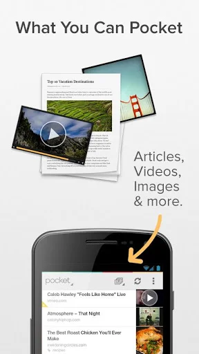 Весьма полезное приложение от разработчиков Read It Later под названием Pocket позволяет сохранять веб станицы, видео, изображение и многое другое, для дальнейшего оффлайн просмотра, то есть без подключения к интернету. Приложение отлично подойдет например для дальней поездки, где доступ к интернету ограничен, а нужную информацию всегда нужно держать под рукой (Адрес отеля, номер самолета, цена на билеты).