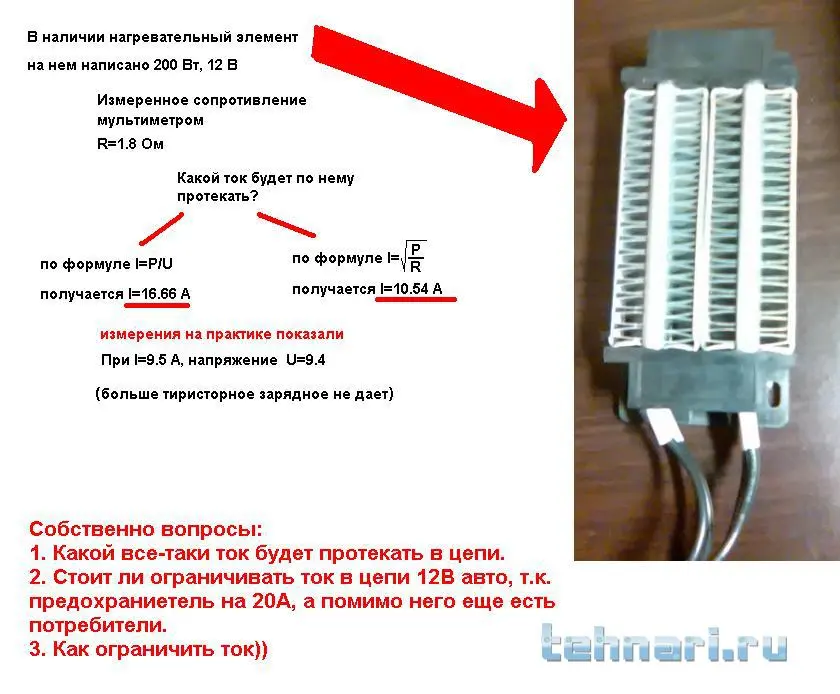 Подключение нагревательного элемента в цепь автомобиля 12 вольт