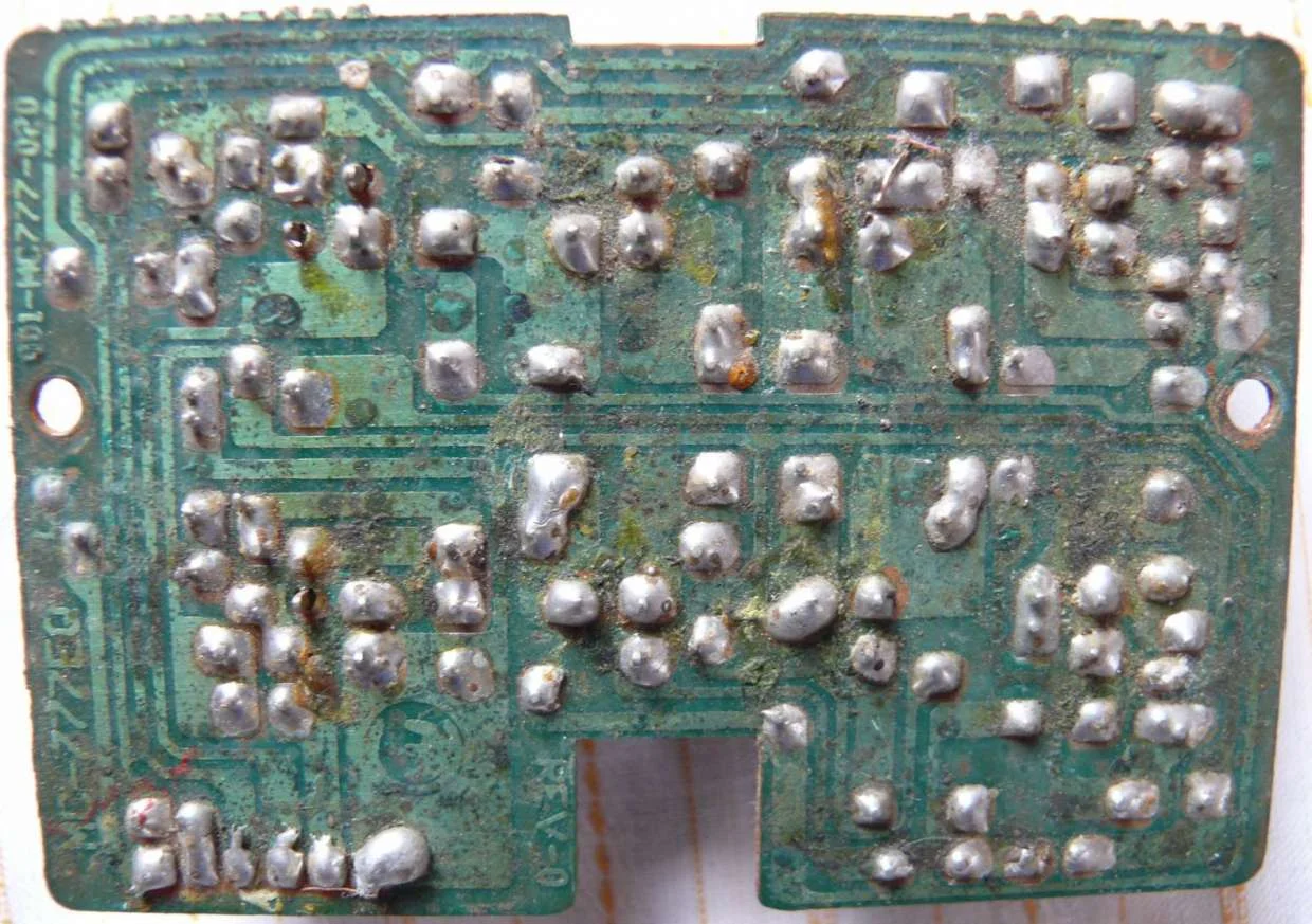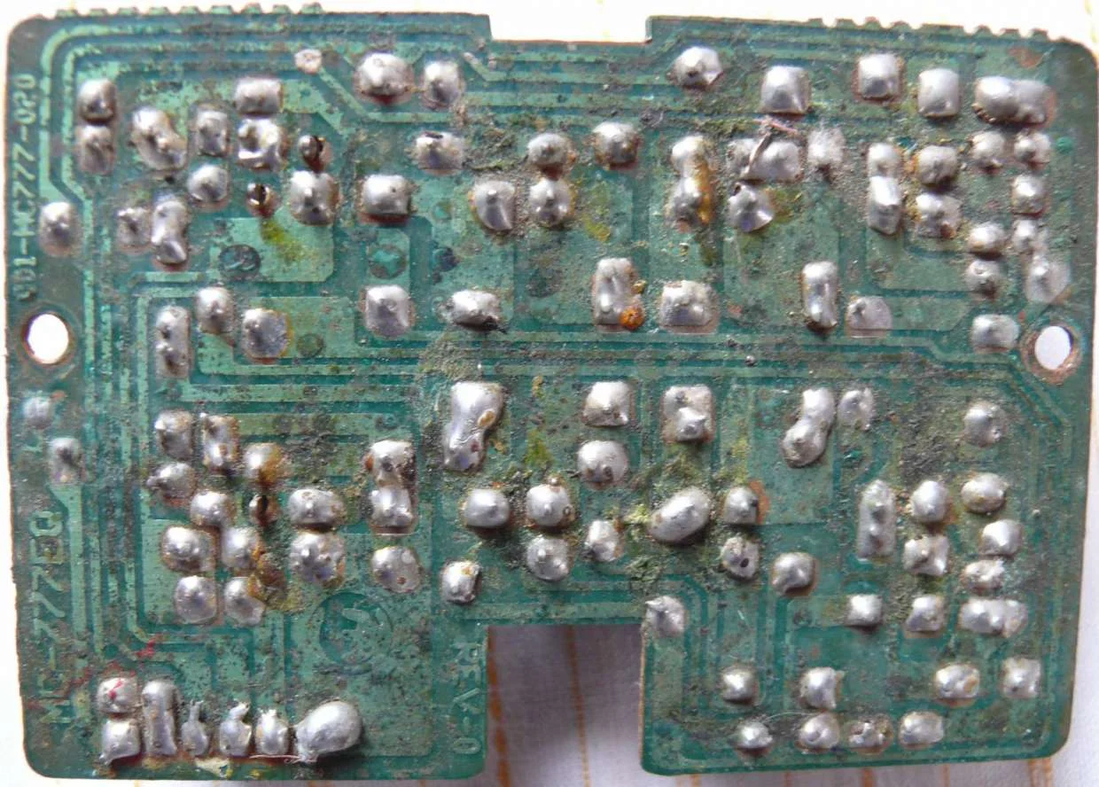 Для начала надо бы отмыть плату от грязи, что бы можно было дорожки просмотреть.