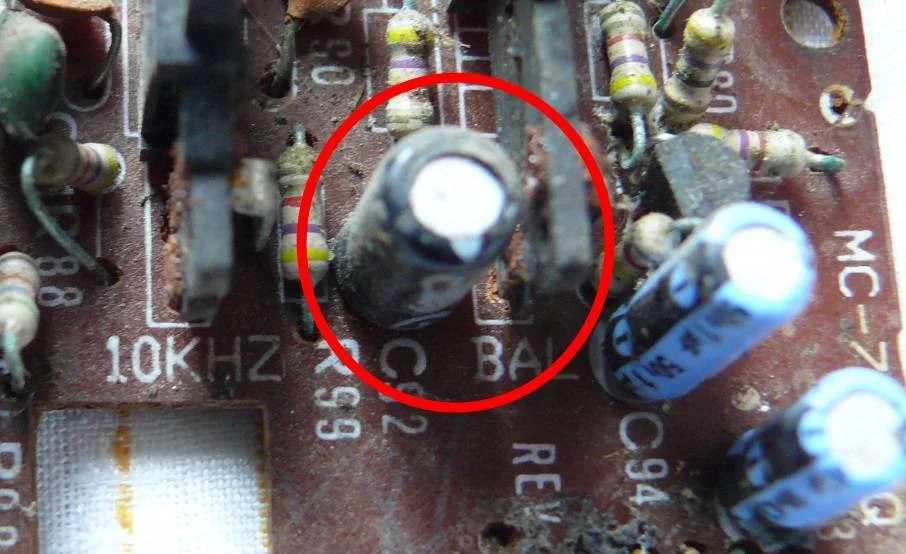 Имел в виду вот этот конденсатор(чёрный?)... или он от грязи чёрный?