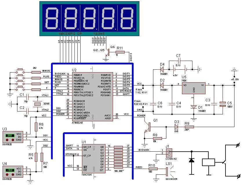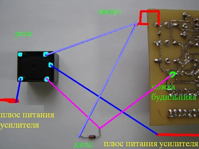 Как то я собирал часы на ATMega8, после чего собрал wav плеер и усилитель к нему для будильника. Вопрос: при срабатывании будильника на 14 ножке возникает напряжение 4,8 вольт. Wav пллер и усилитель должен включатся при срабатывании будильника. Подключить на прямую к этой ножке нельзя, во первых напряжения не хватит, нужно 12 вольт, во вторых от этого просто сгорит микроконтроллер. Мне посоветовали подключить реле. Я подключил, но оно включается и тут же отключается либо включается и не отключается. Потом оказалось нужен диод. Подскажите как мне это все подключить?