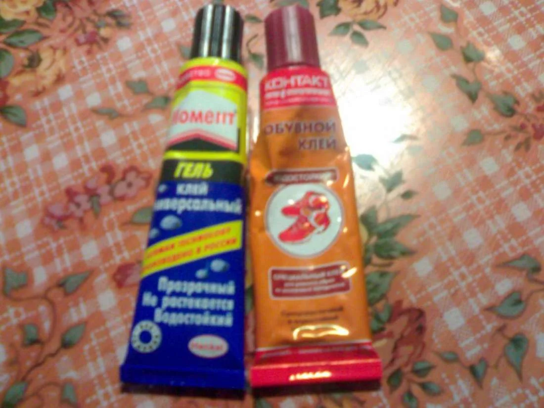 Только полимерный клей (как на фото или его аналоги) склеивает отлично, не воняет как момент, и не дорогой.