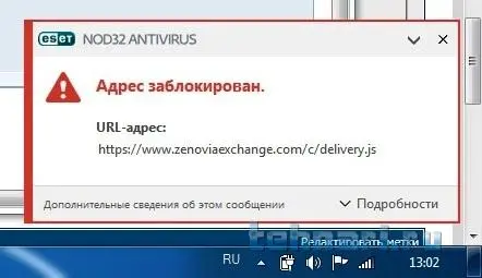 Подозрение на наличие вируса или трояна