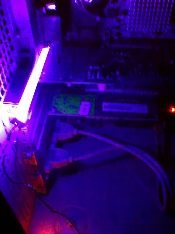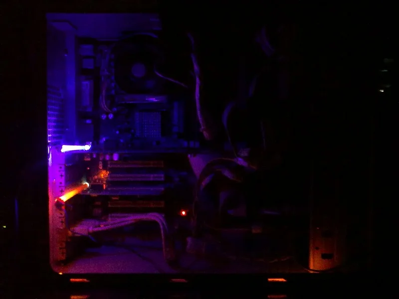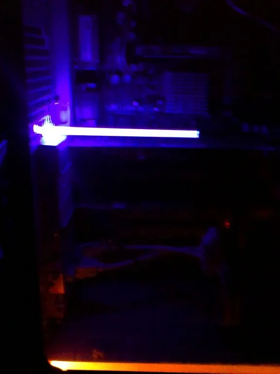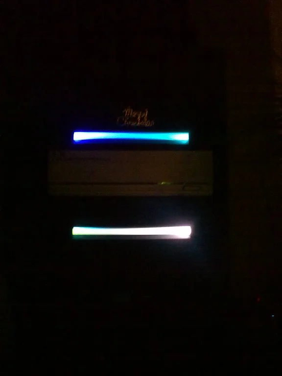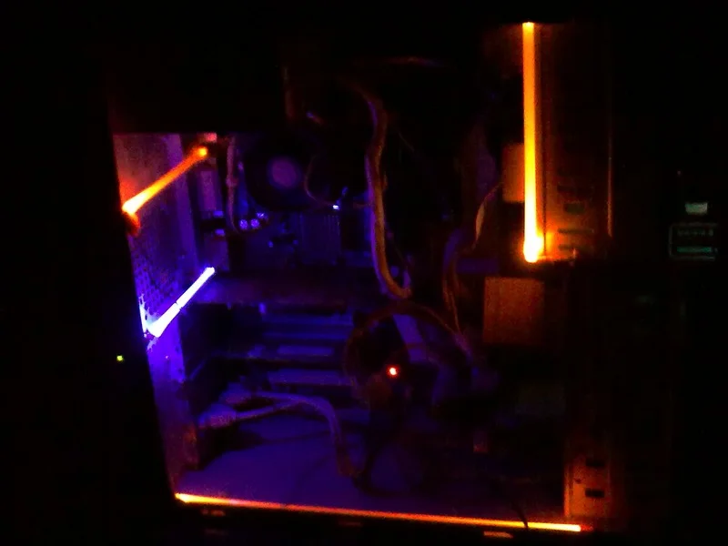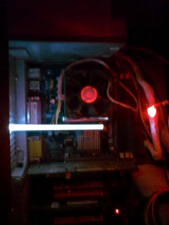 Из раскуренного, делалось всё из подручных материалов, трубки от шариков, диоды из зажигалок/фонариков. на морде верхний на HDD (синий и синий с берюзовым оттенком) нижний на питании (один RGB 3х цветный с контроллером на кристалле, один обычный белый) фотографировалось 3 года назад, перед тем как вырезал обсалютно всё из системника :D