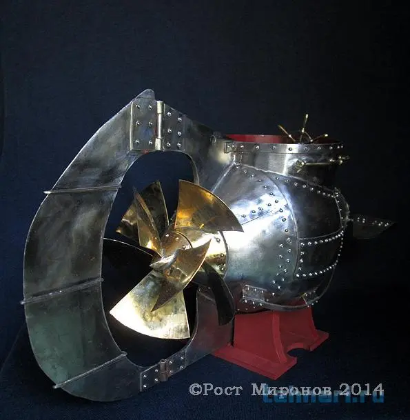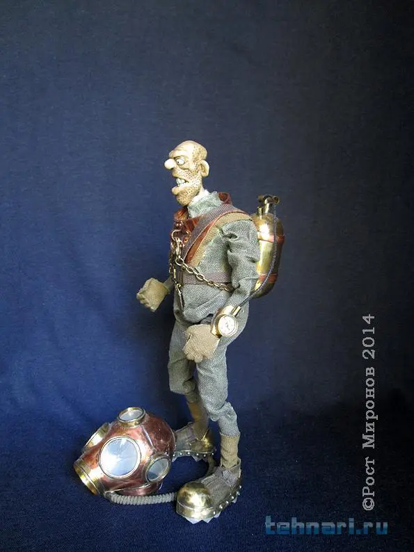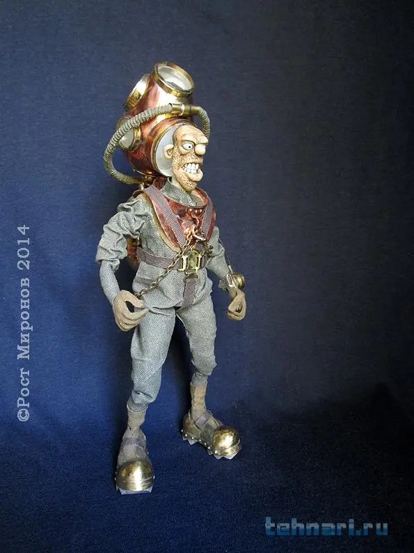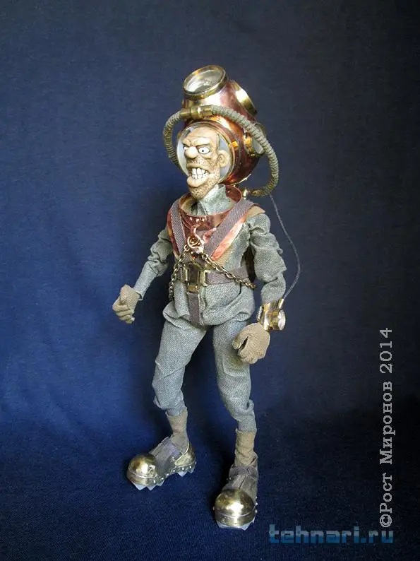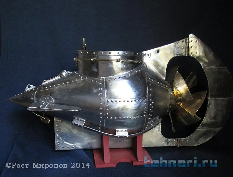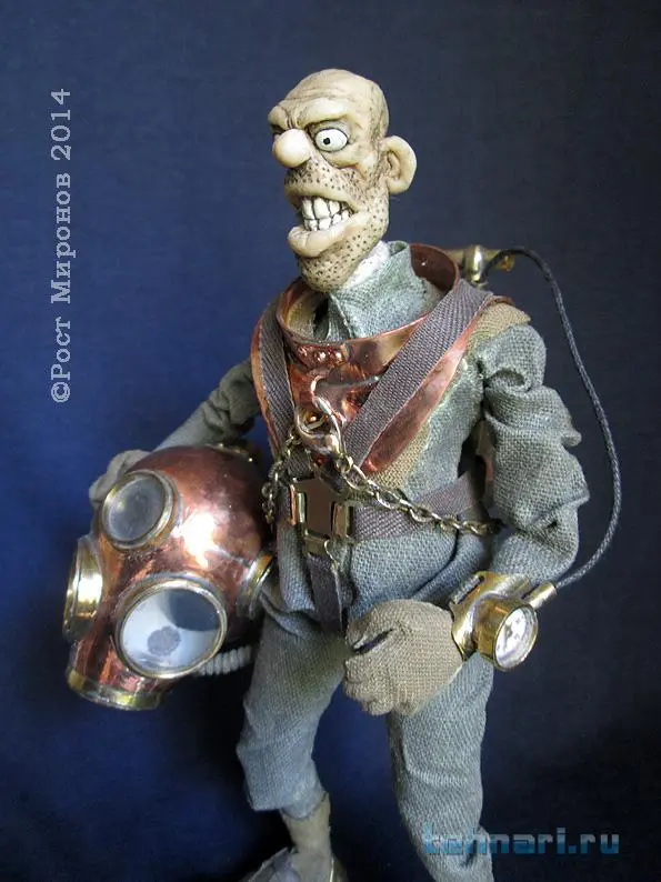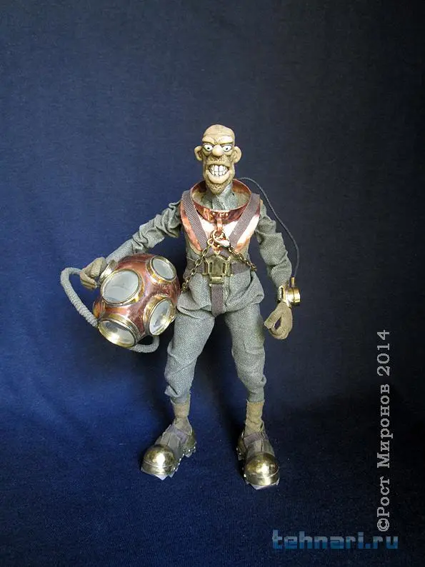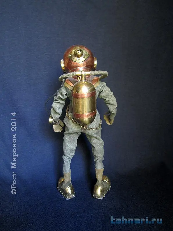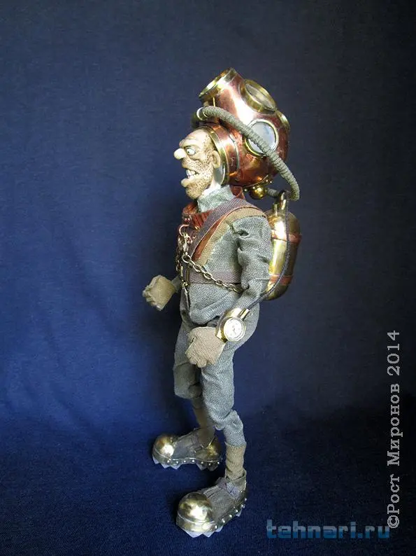 Оснащён: подводным дыхательным аппаратом мастера из Владивостока Рапанова с гоночным шлемом особой выделки.