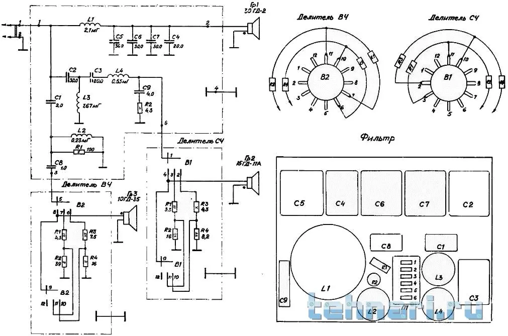 Давным-давно с отцом делали самодельную трехполосную акустическую систему из имеющихся динамиков и какой-то схемы, найденной в интернете (а может и в журнале каком, но вроде бы в инете)