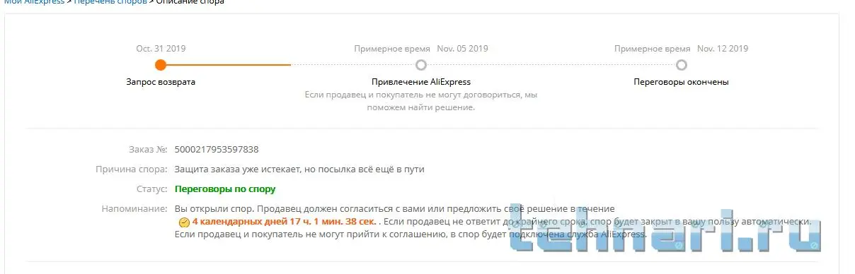 Денис, как и говорил выше, я открыл спор, но только после нескольких часов после завершения срока отправки заказа.