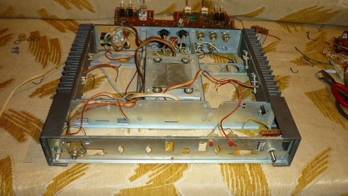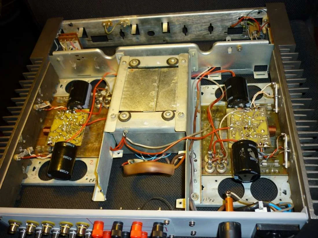 Не смотря на свою простоту, этот усилитель отличается очень неплохим звуком, и практически полным отсутствием каких либо шумов и помех. Настройки сведены к минимуму. КНИ 0.01 % в диаппазоне от 20 гц......20 000 гц. При прослушивании этого усилителя с АС Wharfedale, темброблок был не нужен.