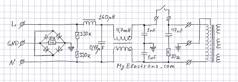 Собрал в точности как в статье, номиналы точно те же. Но от помех это меня не избавило. Вот подумываю, может собрать в усилок отдельно такой фильтр. Как раз есть два синфазных дросселя из видеомагнитофона. Хочу их соединить последовательно, а кондер на 47 нФ между ними поставить.