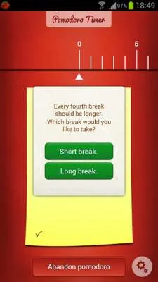 После каждых 4х планирований программа предложит взять длительный перерыв на 10-15 минут, чтобы полностью отдохнуть и дать расслабиться уму и телу.