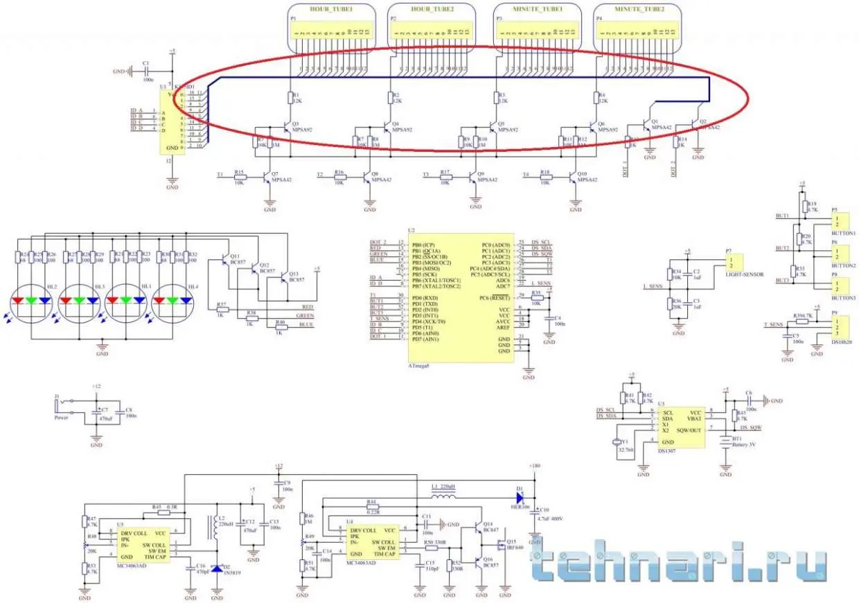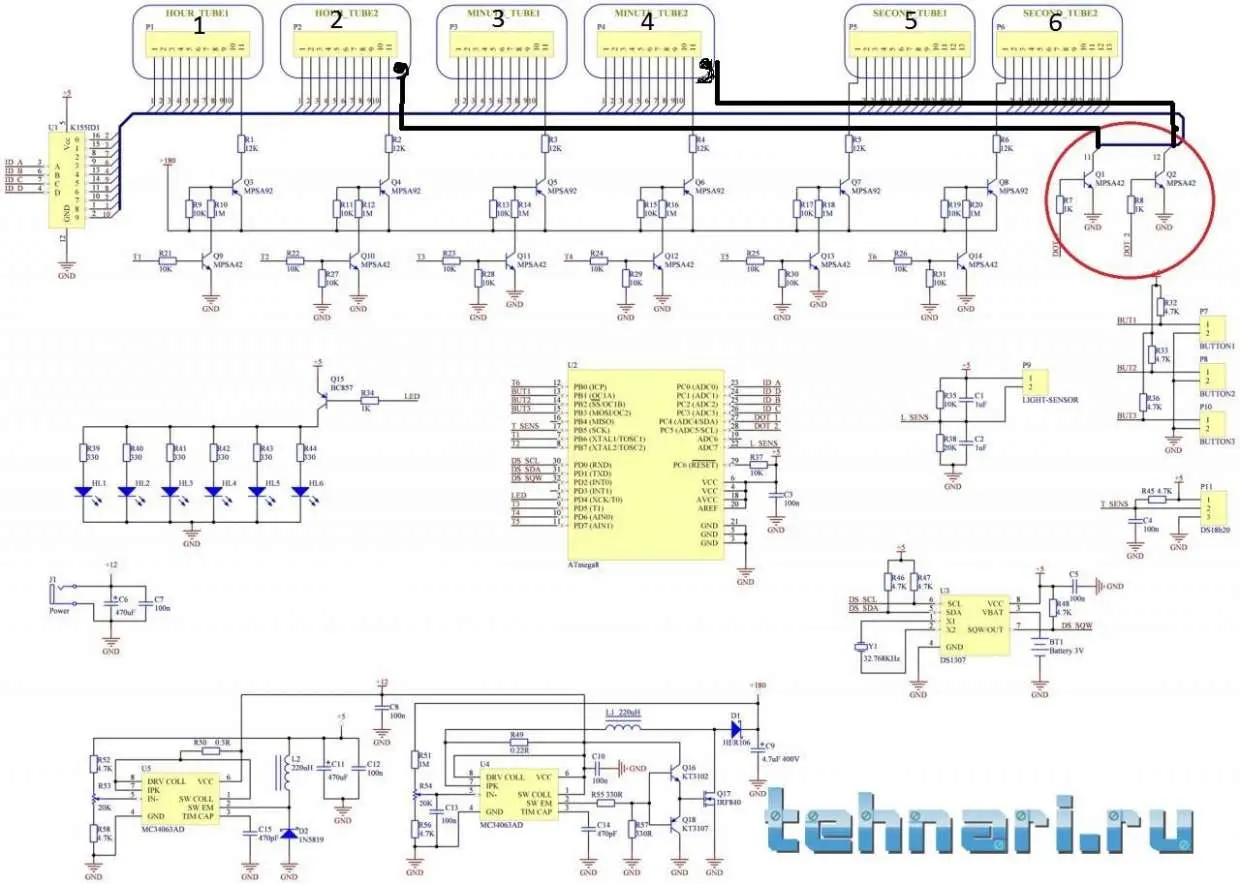 Но я бы посоветовал использовать вместо запятых лампочки ИН-3 они более симпатичнее чем запятая.