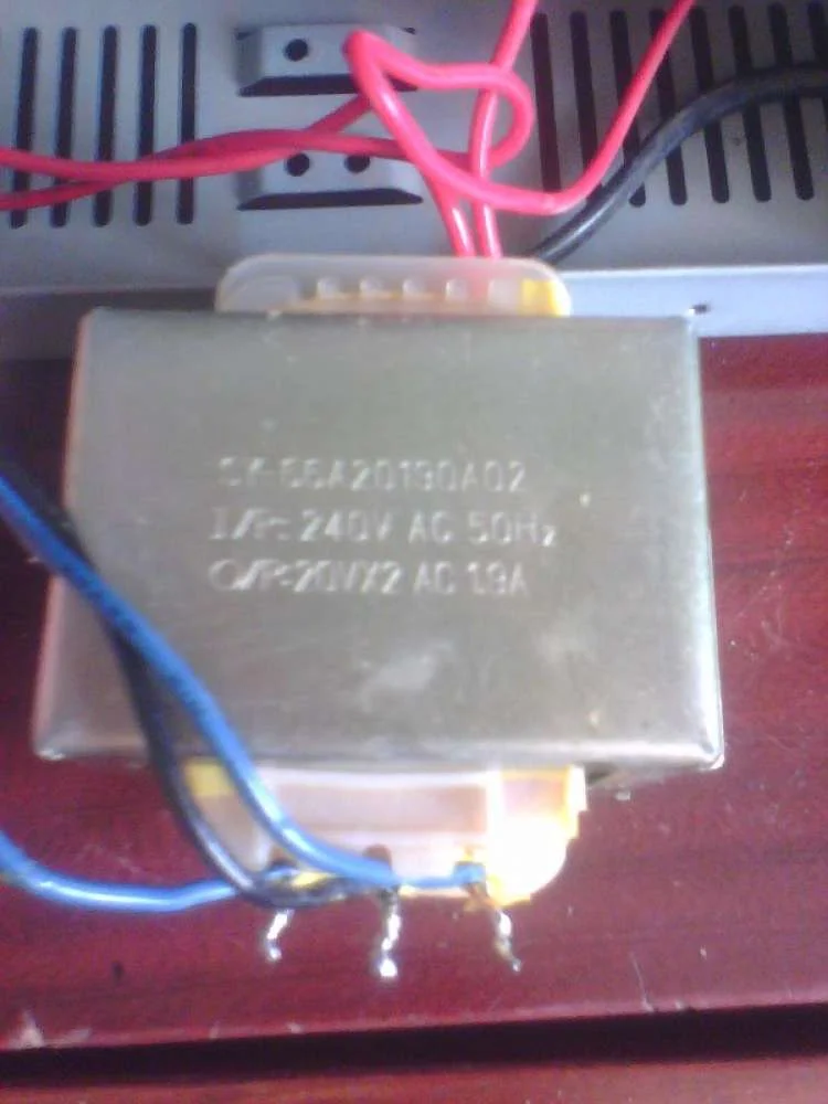 Подойдёт трансформатор 80...100Вт с двумя вторичными обмотками по 20В и током 2А