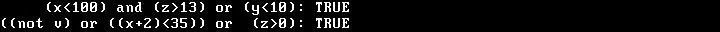 Writeln('     (x<100) and (z>13) or (y<10): ',(x<100) and (z>13) or (y<10));