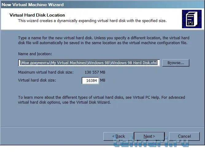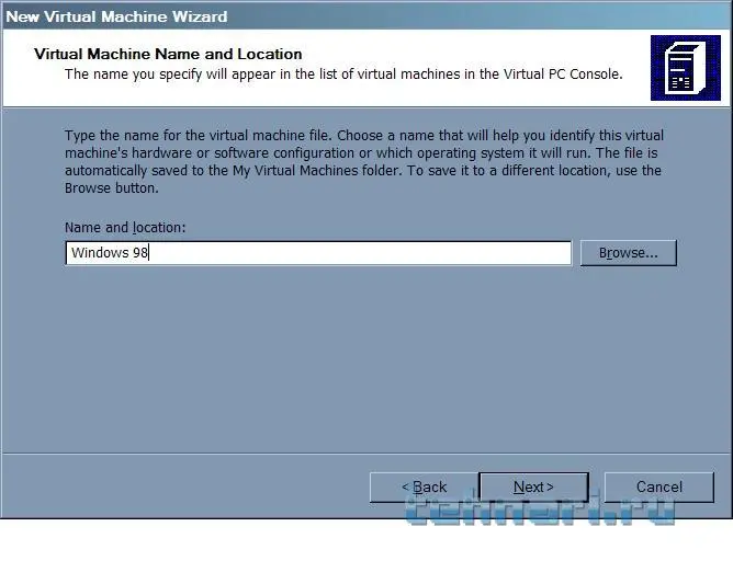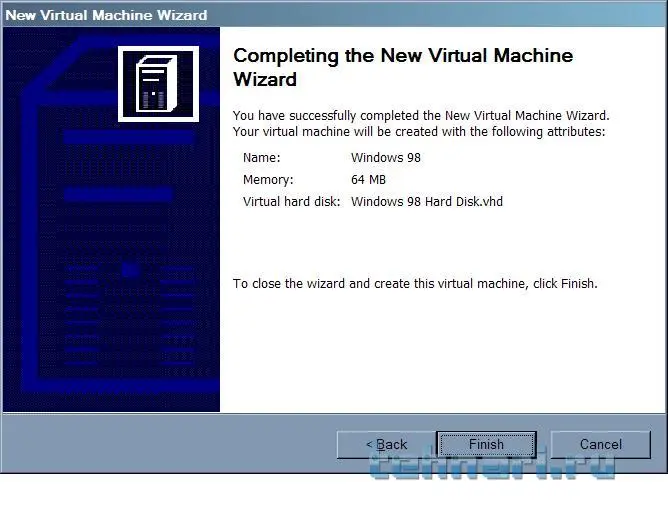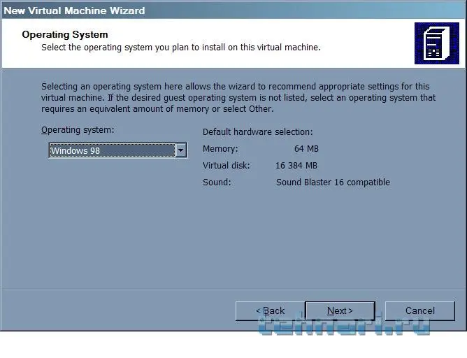 Создаём виртуальную машину. Называем её Windows 98, тогда на автомате настраиваются часть параметров ;)