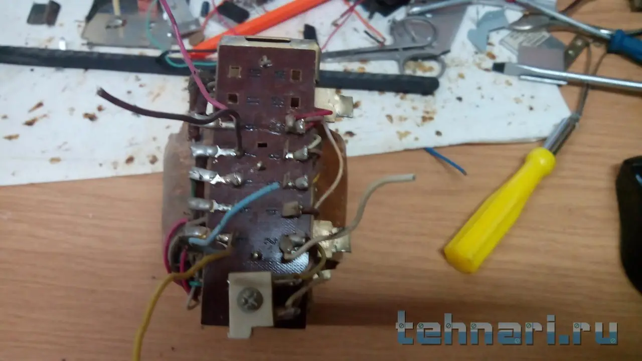 Вся первичка распаяна на октальном гнезде. На белую колодку приходит 127 вольт, для проигрывателя( половина первички).