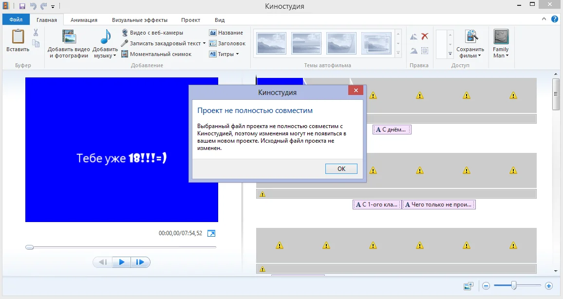 Чем только не пытался открыть так и не получилось, в мув-маркете пишет "файл создан с использованием неподдерживаемой версии windows movie maker"