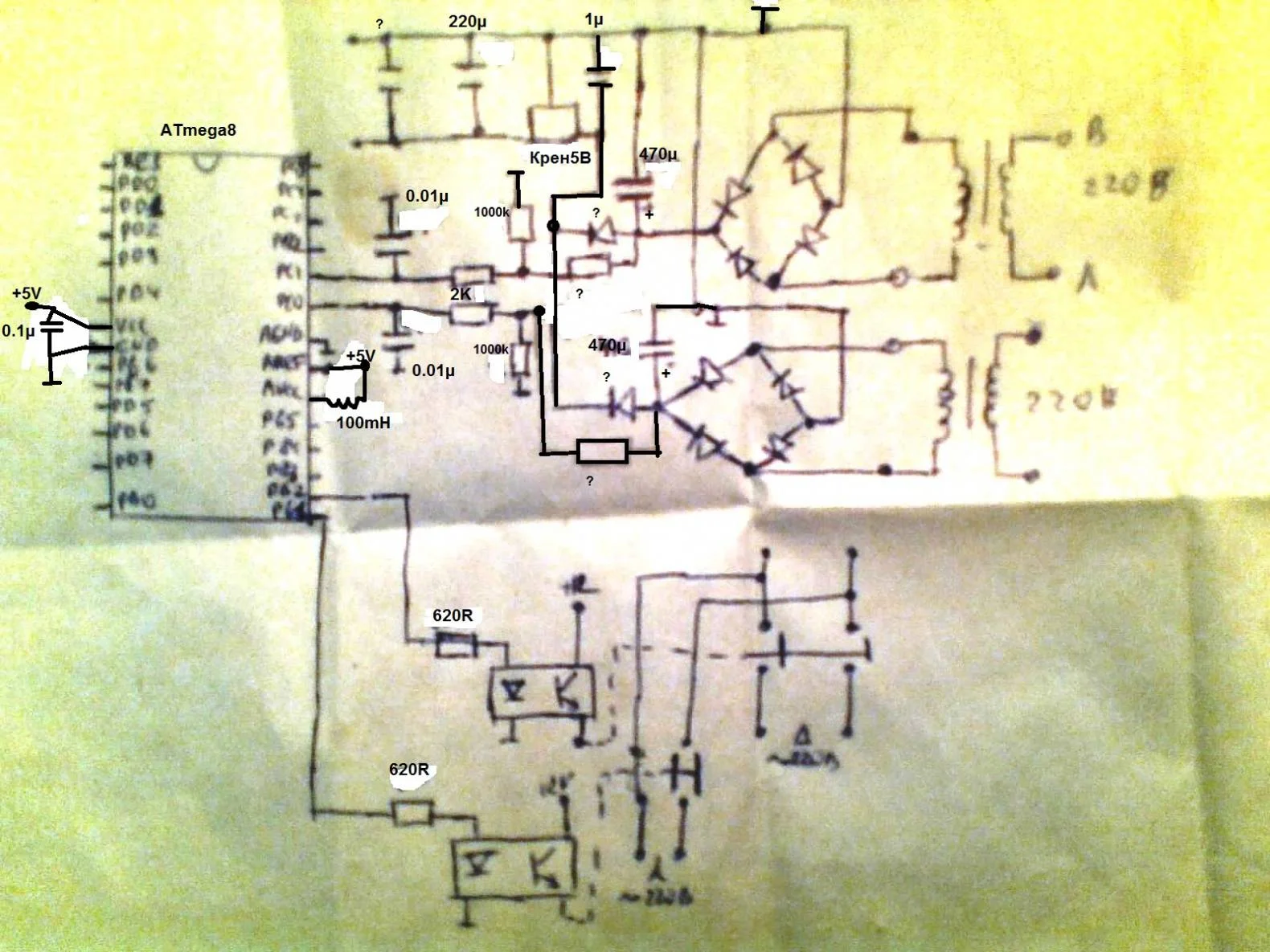 :tehnari_ru_837: Есть схема...она не полностью доделана...прошу, кому не сложно помогите еёдовести до конца...выставить номиналы не обозначеных елементов...и еще очень прошу помогите как нибуть разместить это на печатной плате (приблизительно, т.к. на 100% не известно какие именно будут использоватся элементы)....Очень нужно и желательно побыстрей...