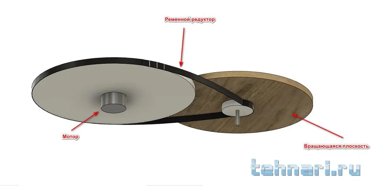 Необходим маломощный электромоторчик, максимально бесшумный, который бы передавал вращение плоскости (магнитной мешалке) порядка 40-80 оборотов в минуту и мог работать несколько часов подряд. (Набросал рисунок на скорую руку для наглядности) Моторчики с редукторами (пробовал 3 вида) - чрезмерно сильно шумят. Тестировал моторчик от СВЧ печи - тихий, но мало оборотов и перегревается. Появилась идея передать вращение через ременной редуктор и получить желаемые 40-80 оборотов, но, насколько я понимаю далеко не каждый моторчик от СВЧ печи выдержит, скажем, 20 часов работы подряд. Собственно вопрос: есть ли в природе аналоги у моторчиков СВЧ печей которые не перегреваются? Или, может быть, можете подсказать какие нибудь модели этих моторчиков подходящие вышеописанным условиям . А может быть ларчик открывается куда проще и можно всё можно реализовать иным способом? Цена мотора, к сожалению, тоже очень критична. Буду признателен, за ваши подсказки и идеи.