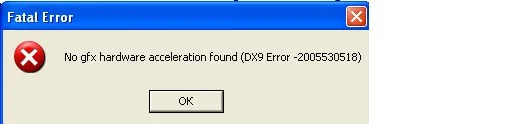 Ошибка - No gfx hardware acceleration found (DX9 Error -2005530518) Подскажите,что делать? Это уже не в первый раз.