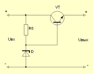 Стабилитрон любой маломощный 5...6 В, например КС156А, транзистор любой маломощный n-p-n, например КТ315.