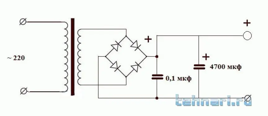 Просто трансформатор? А выпрямитель? Но это еще пол беды..... Источник питания здесь ДВУПОЛЯРНЫЙ!!!! А вот что это такое убедительнейше прошу изучить сей вопрос самостоятельно, иначе конструктивного диалога у нас не получится. В общем случае его схема выглядит так:
