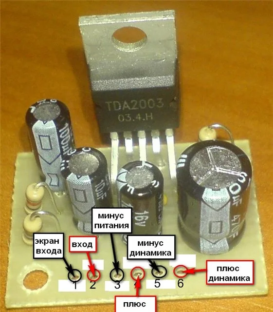 А разве на схеме не видно? А динамик нужен на 10 Ватт.