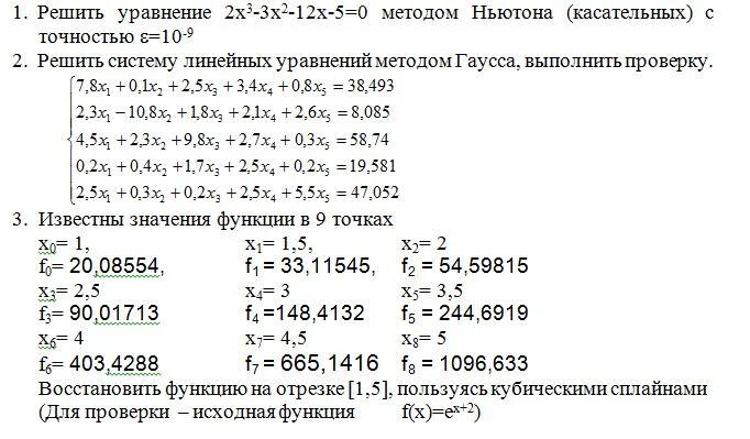 Собственно, по 1 аналогичные задачи были - поищите, а с кубичными сплайнами ни времени, ни особого желания разбираться нет. Огромный объем работы, куча писанины - а, собственно, с какой стати? Это уже не помощь, а иначе называется...