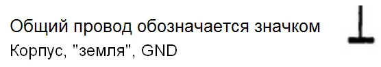 Все точки схемы, обозначенные таким значком( общий провод, земля, корпус, GND) соединяются вместе и подключаются к минусу питания