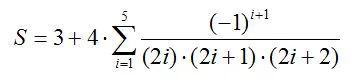 S = 3 + 4*(1/(2*3*4) – 1/(4*5*6) + 1/(6*7*8) – 1/(8*9*10) +
