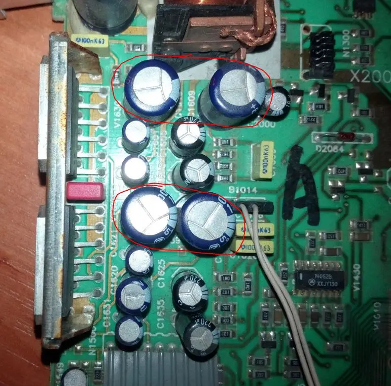 Попробуем разобраться - на фото обведены красным конденсаторы Сни2005b.webp- если они 2200мкф тогда смотрим по схеме нижеСни2005.webp.