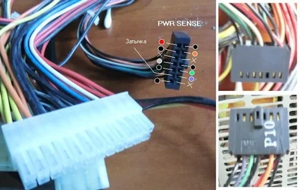 Помогите запустить старый блок питания от какого-то сервера. Главный разъем какой-то интересный, зеленого провода нет, боюсь что-нибудь не то замкнуть. Такое впечатление, что у БП управление выведено в отдельный разъем. Помогите разобраться - в электронике не силен...