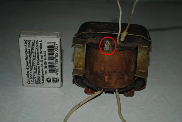 с первичкой прозванивается. + еще к нему был припаян провод и на розетку что ли шел.