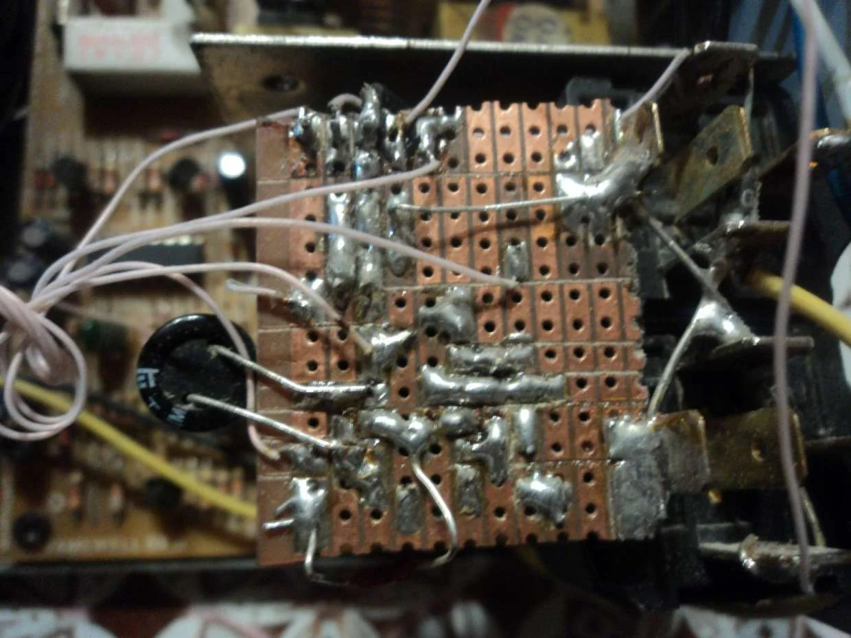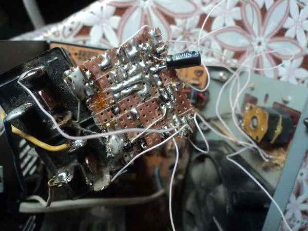 У меня есть еще одна такая, которая еще рабочая.Я ее сфотографирую вечером, т.к. сейчас в работе, проверю все номиналы на резисторах,кондерах, напряж питания и т.п. начерчу что как распаяно и выложу