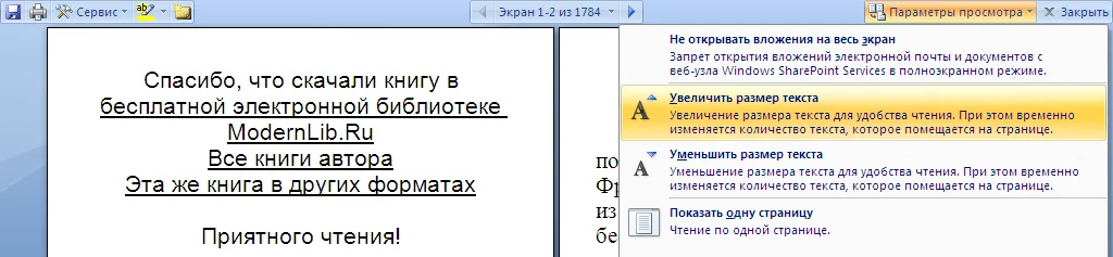 После переустановки Windows (и Office 2007) документы Word в режиме чтения открываются не в том количестве страниц, как раньше. Сначала, проблема решалась путём увеличения размера текста в параметрах просмотра (в режиме чтения), и общее кол-во страниц стало соответствовать прежнему (потому что раньше как раз в документе увеличивался размер текста и кол-во страниц исходного документа). Но потом настройки сами собой сбились, и теперь уменьшение/увеличение текста в параметрах не приводит к нужному кол-ву страниц, а все документы должны соответствовать прежнему кол-ву страниц, т.к. синхронизированны.