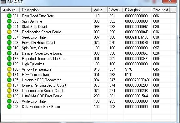 Smart печальный. 197 заремапленных (переназначенных) секторов + 523 пендингов (потенциальных кандидатов на переназначение). Ни систему, ни чего либо ценное этому диску доверить уже нельзя. Информацию с диска слить, ну а с самим диском... Можно выполнить ERASE в прожках MHDD или Victoria - это позволит с пендингами разобраться, программные просто исчезнут, а на те что останутся напустить команда REMAP, она должна помочь микропрограмме винта принять решение о переназначении проблемных секторов. По идее RAW значение 197 атрибута должно обнулиться, а 05 атрибут пополниться очередной порцией ремапов. Затем выполнить полное (полное, а не быстрое) форматирование - при полном форматировании проводится верификация всех секторов и проблемные сектора исключается из доступных ФС секторов. Ну а далее диск можно использовать под файлопомойку, периодически посматривая на значения 197 и 05 атрибутов. Если они будут расти, то значит диск посыпался бесповоротно и его даже под файлопомойку использовать не стоит. Впрочем диск прожил довольно долгую жизнь - более 22 тыс. часов наработки, можно и списывать. Короче, если 197 и 05 будут расти, то диск или в ведро или можно это, к примеру, сделать [mod]Вроде пора уже знать, http://www.tehnari.ru/f8/t32642/[/mod]