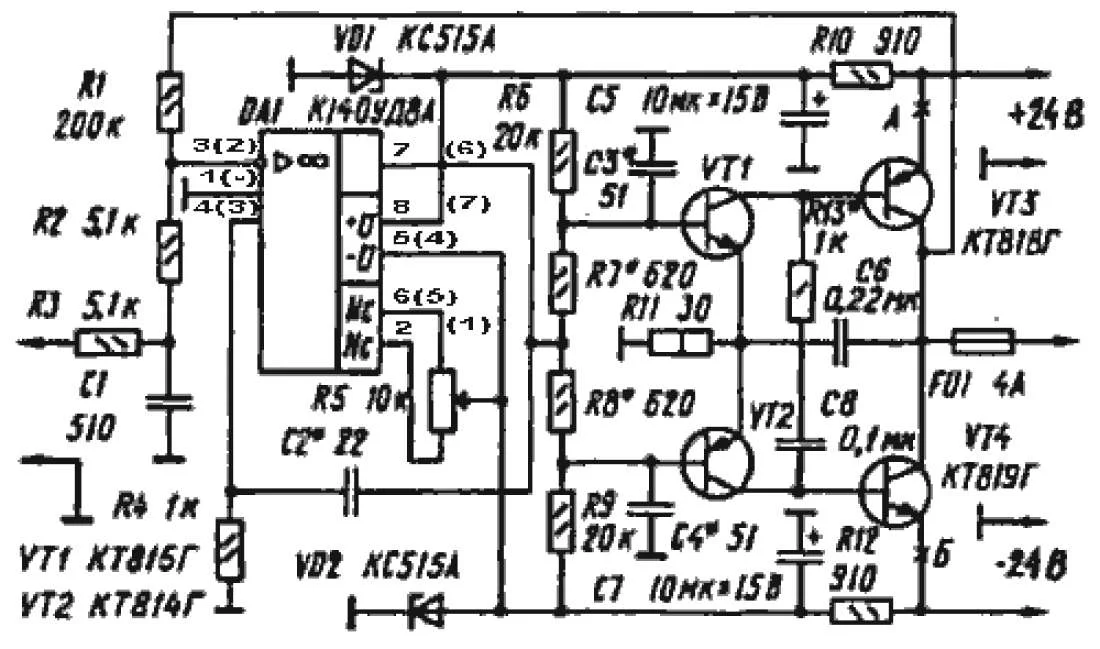Вот ещё один . Как вариант. Тоже 100% рабочий. Только, что в первом, что во втором варианте, входную МС ставь либо кр544уд2а, кр574уд1а, к140уд11.