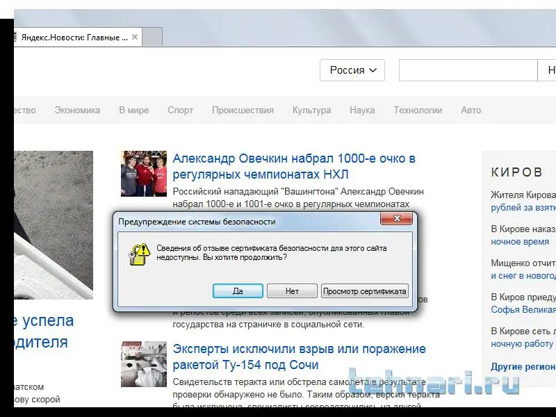 Постоянно выходит окно "Сведения об отзыве сертификата..."