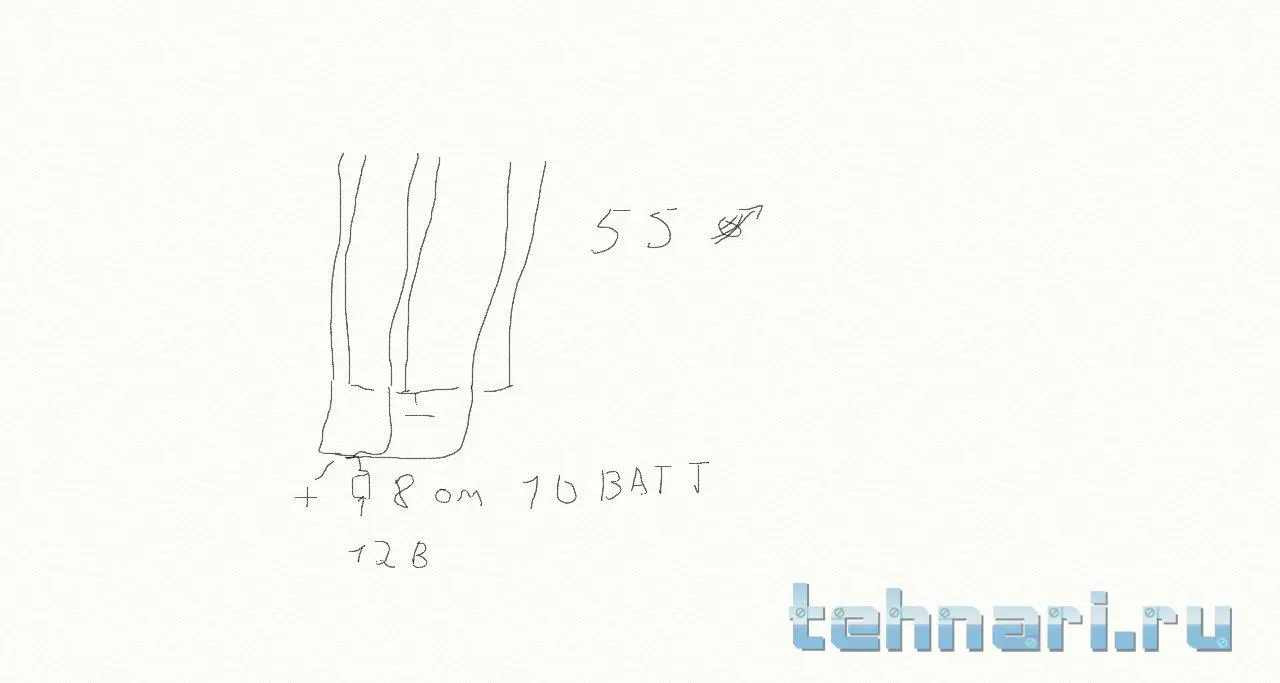 вобщем на схеме видите , 55 диодов три шкалы по где то 18шт . питал от 12в , диоды обычные 3в 20милиампер наверное , сделал расчет резистора получилось где то 8 ом , я пробовал поставить 22 ом 5ватт две штуки параллельно получаеться 10ватт но при этом диоды чуть теплые стали . правильно ли я сделал расчет и схему подключения ?