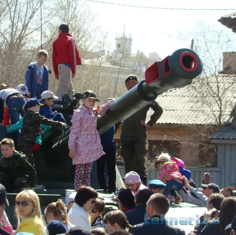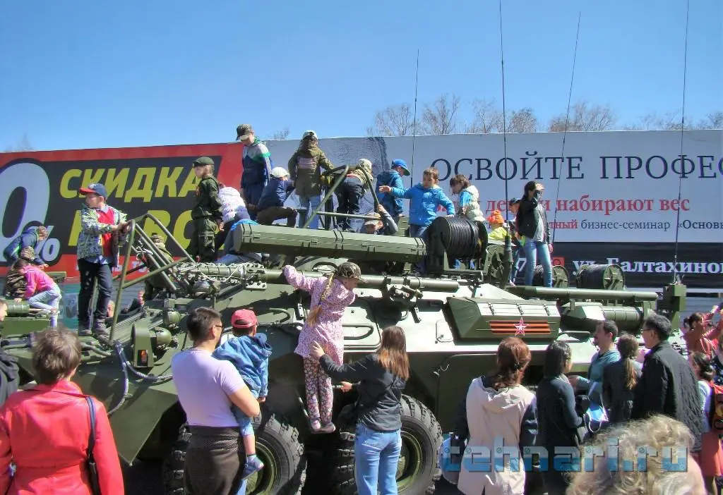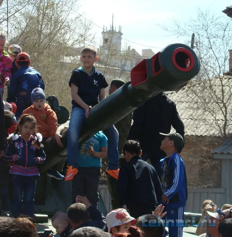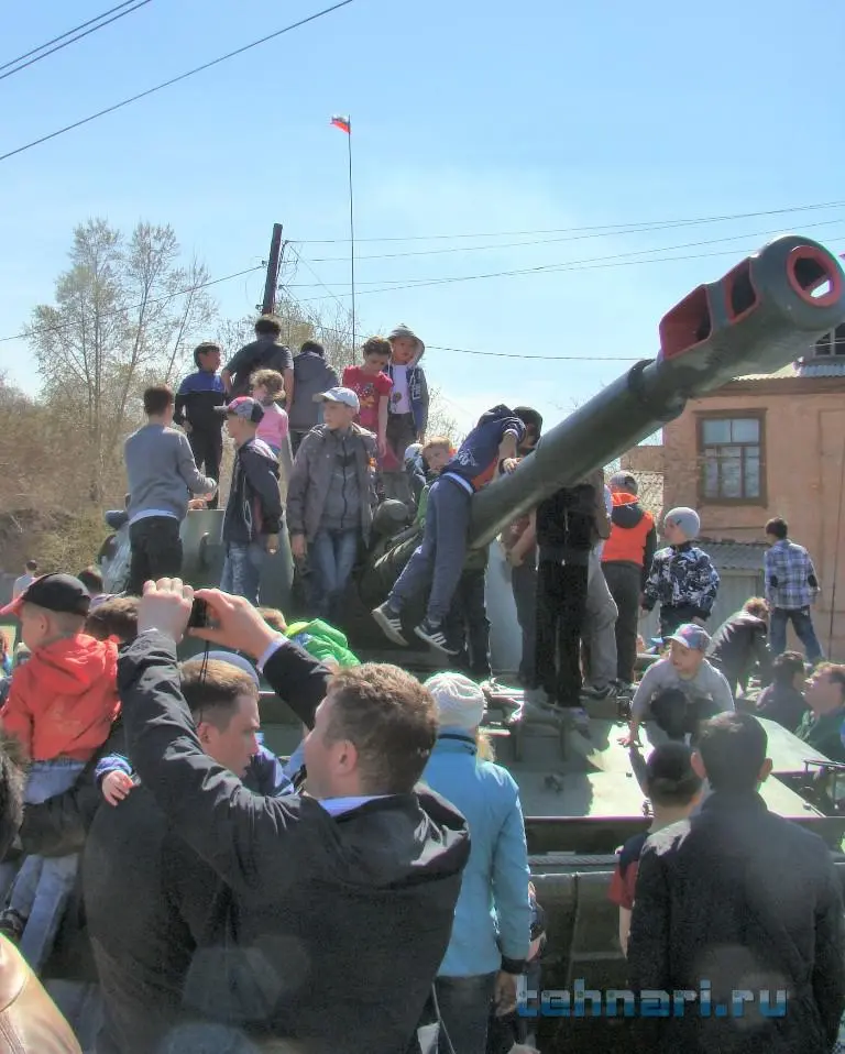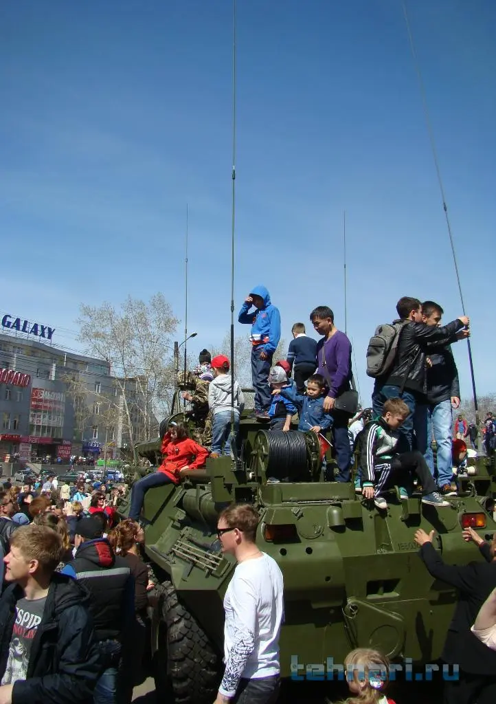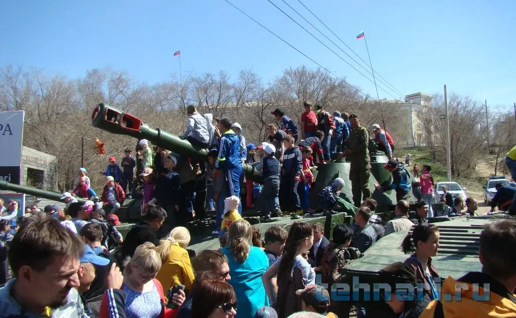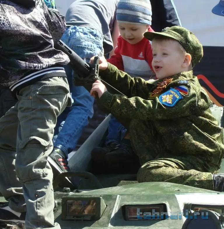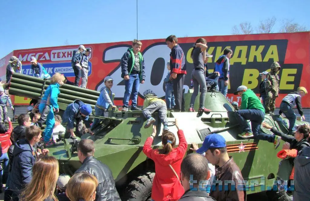 Здесь же была выставлена боевая техника, которая сходу стала объектом массированной атаки со стороны многочисленной детворы. За их телами броня танков и машин вообще не угадывается.
