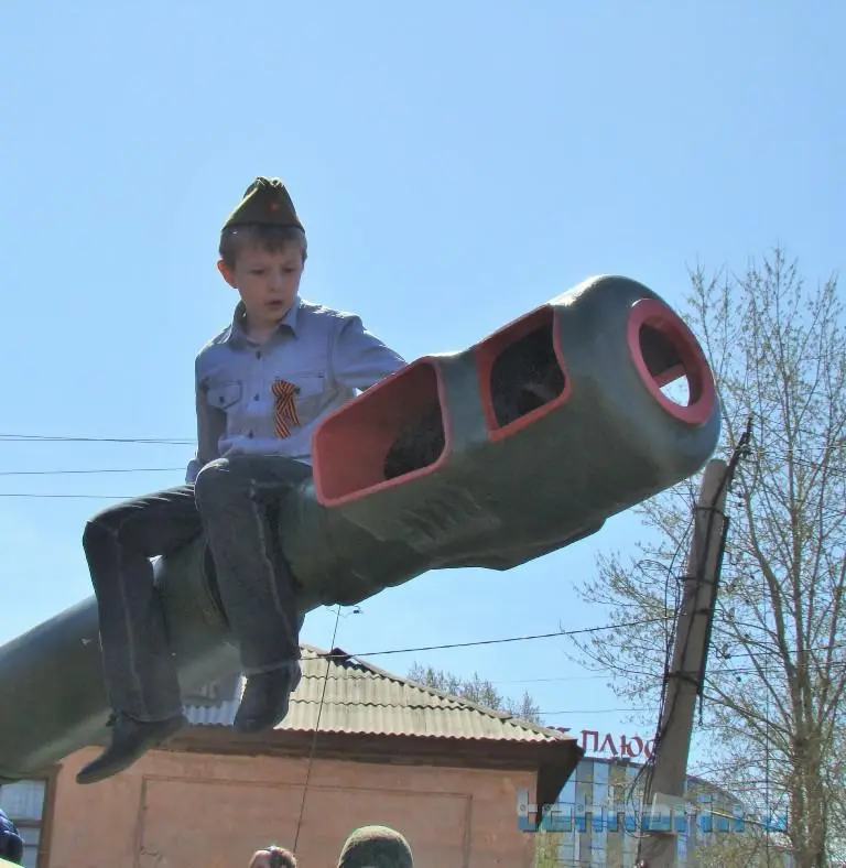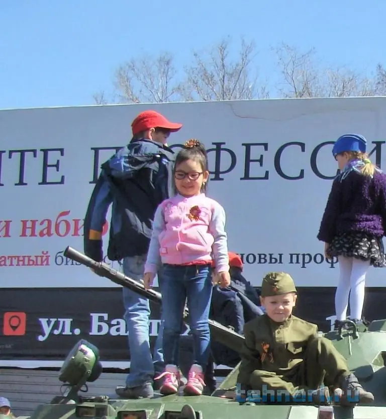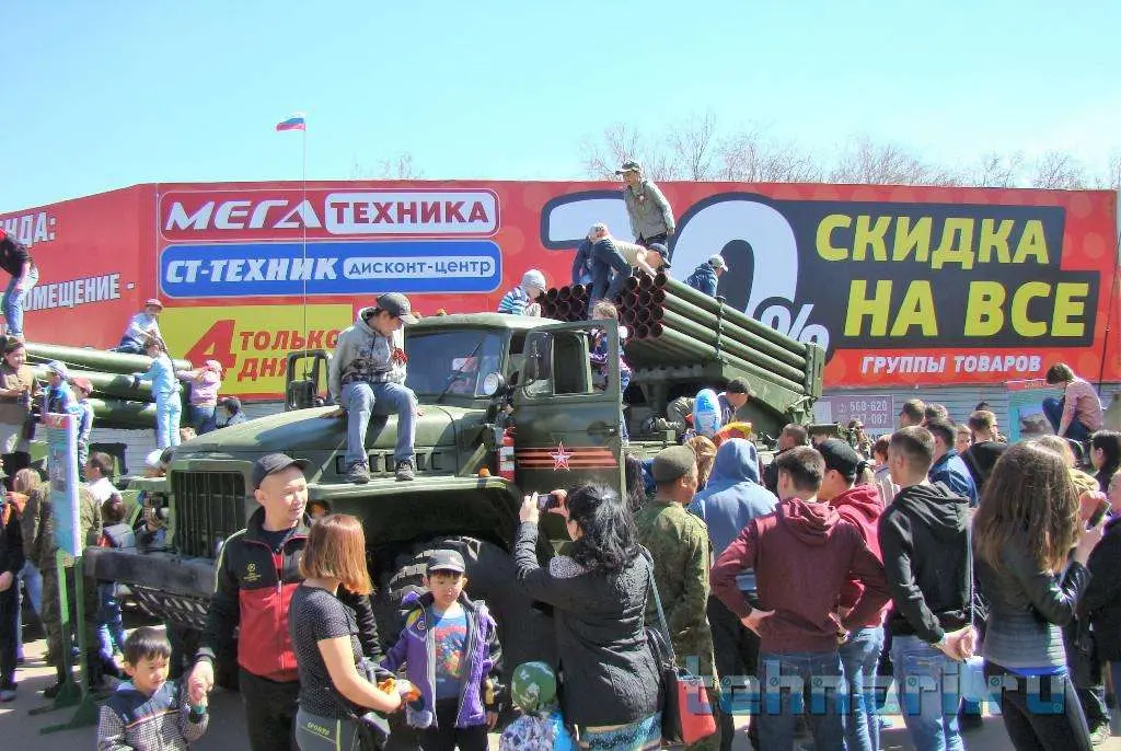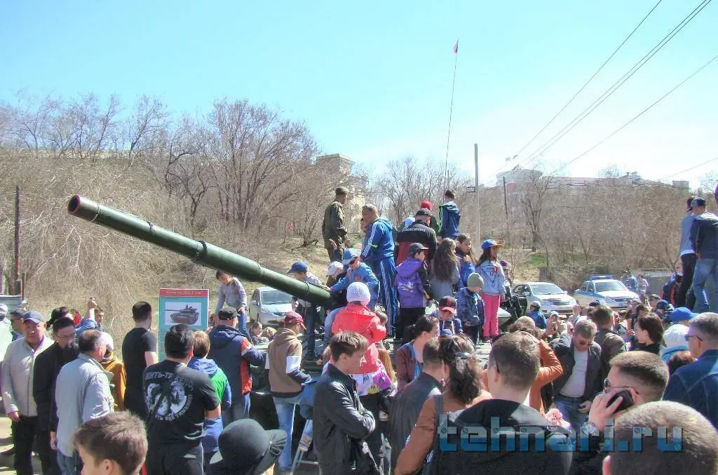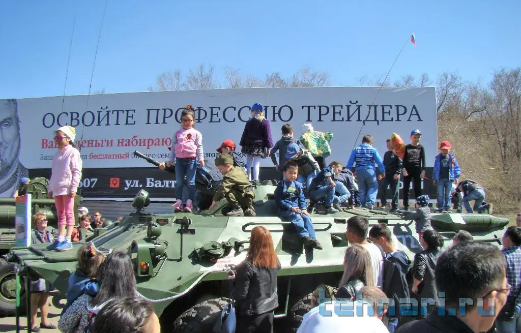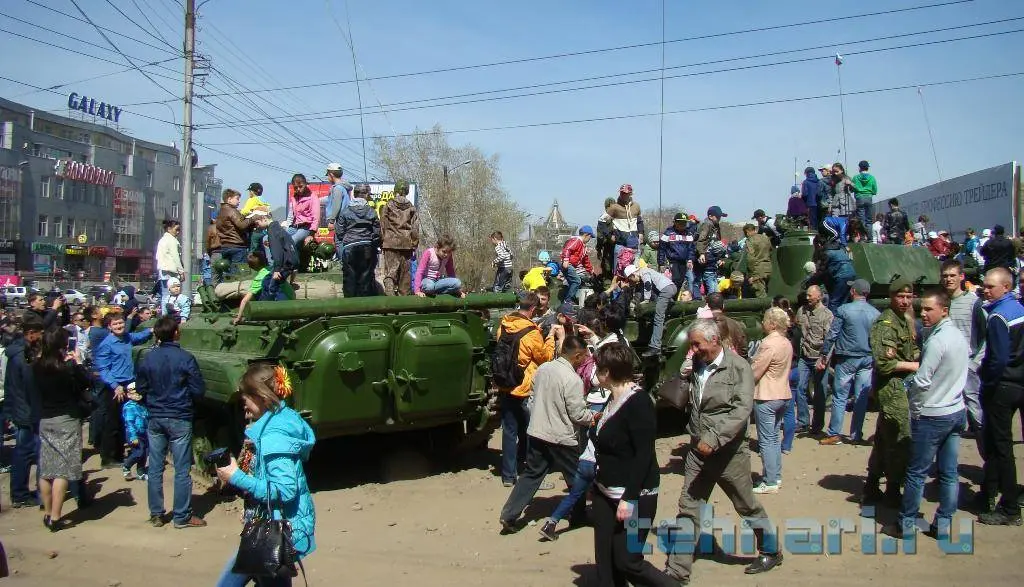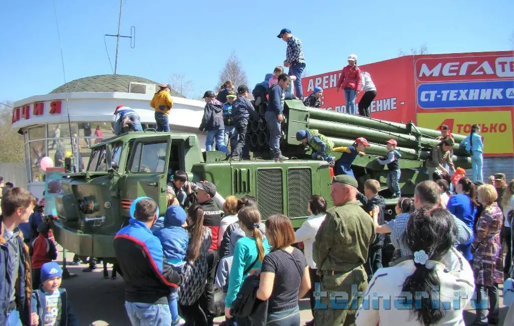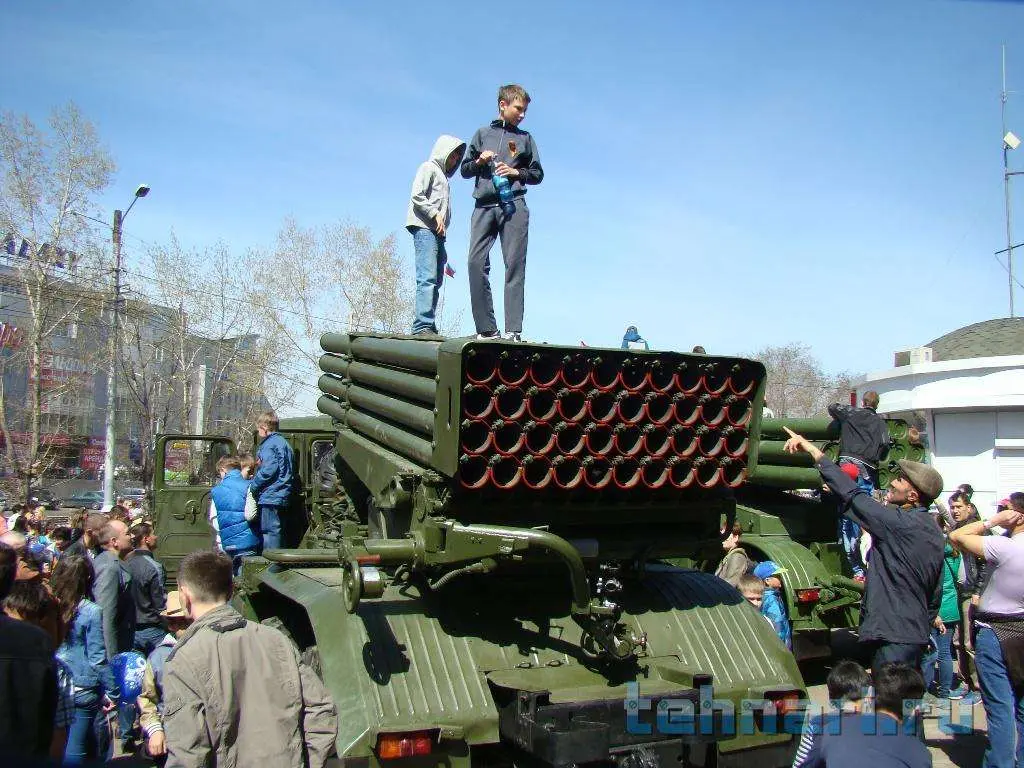Здесь же была выставлена боевая техника, которая сходу стала объектом массированной атаки со стороны многочисленной детворы. За их телами броня танков и машин вообще не угадывается.