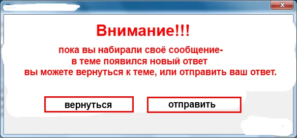 не знаю, как сформулировать- попробую: в общем, заметил на некоторых других форумах такую функцию, как предупреждение о новых сообщениях. т.е., я, допустим, увидел тему, начинаю что-либо писать в ней/отвечать на вопрос. завершив набор текста, жму "отправить"- всплывает примерно такое окошко (извините, я не художник):