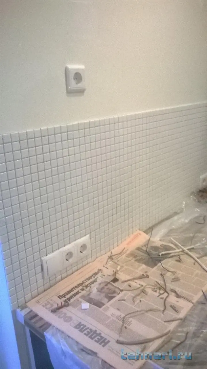 Привет всем ,дочка продала квартиру из двух комнат и на эти же деньги купила трёшку в другом районе .Попросила наклеить пенопластовые молдинги на стык потолка и стен ,так как везде были трещины.Заменить дверные полотна ,наличники и плинтуса .Плинтус выбрала деревянный ,белый и уже крашеный -задолбался пилить. На выходных можно делать уборку и завозить мебель. На кухне поклеил мозаику а до этого были обои.