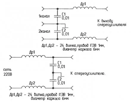 и подскажите имеет ли смысл делать эти два фильтра? один сетевой, а второй (тот что выше) подключается между выходом усилителя и колонками