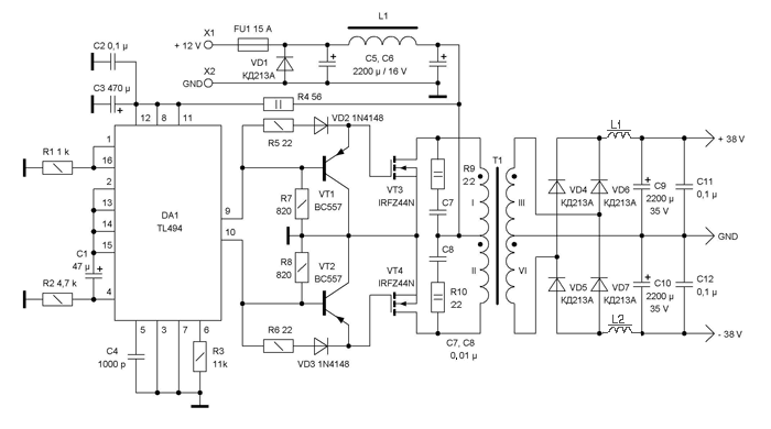 Мне не на 220вольт,а только на 35 вольт преобразователь нужен:)И готовый набор купить возможности нет,мало радиомагазинов.Так что помогите найти схемку.