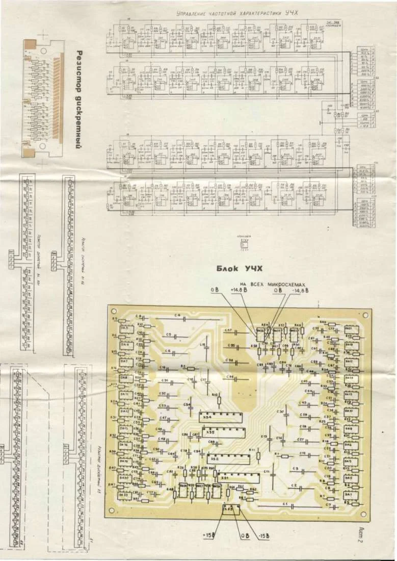 На выходе левого канала висит постоянка, поменял все литы, прозвонил, предварительно выпаяв, все диодные мосты, транзисторы, диоды, все исправно! Поменял две микросхемы К553УД2, ноль эффекта, да еще транзистор (КТ819В) начинает очень сильно греться уже через несколько секунд после включения эквалайзера, а напряжения на микросхемах больше в несколько раз, чем указано на схеме!
