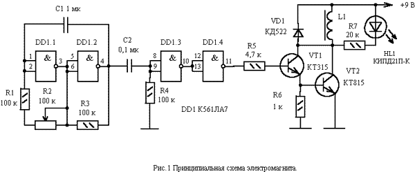 Предлагаемый прибор вырабатывает импульсы магнитного поля малой мощности.